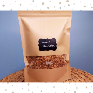 * Bio-Haferflocken, * Bio-Sonnenblumenkerne, * Bio-Kokosflocken, * Bio-Kokoschips, * Bio-Kokosöl, * Bio-Agavendicksaft
